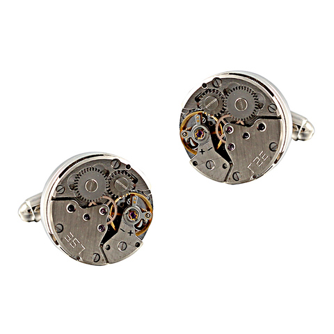Pháp Đồng hồ thạch anh Đồng hồ quay mạ bạc Khuy măng sét