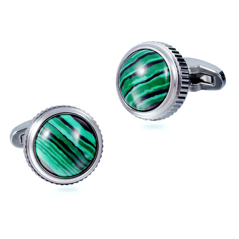 Malachite đá tháp cao răng cưa thép không gỉ Khuy măng sét